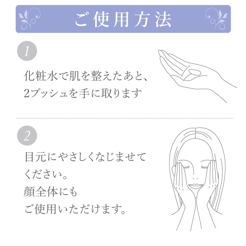 化粧水で肌を整えた後、気になる目元にご使用ください。